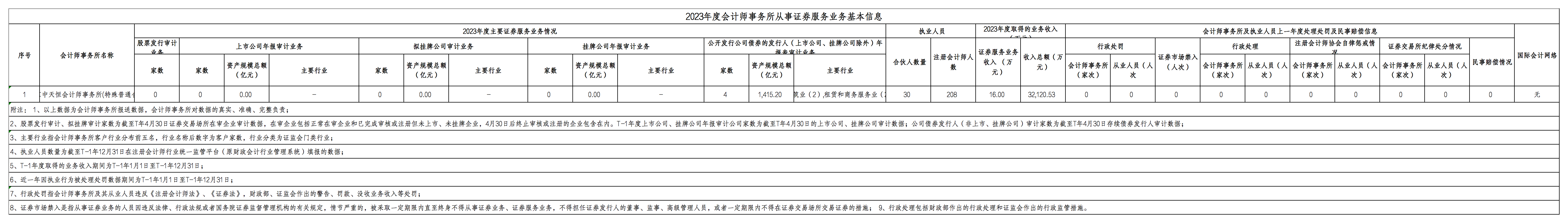 北京中天恒會計師事務(wù)所(特殊普通合伙)2022年度信息披露