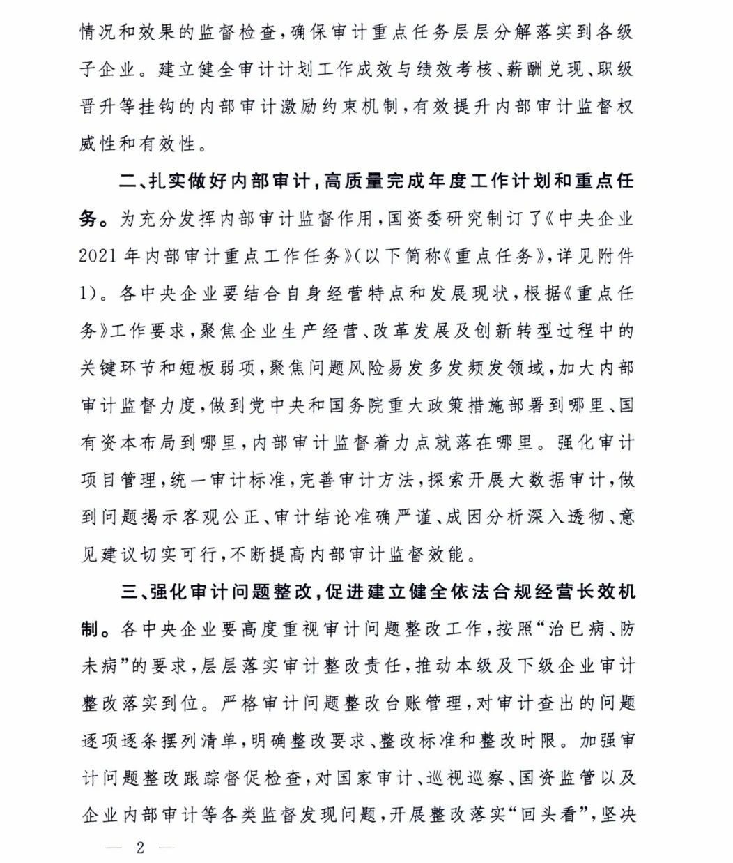 關(guān)于做好2021年中央企業(yè)內(nèi)部審計(jì)工作有關(guān)事項(xiàng)的通知