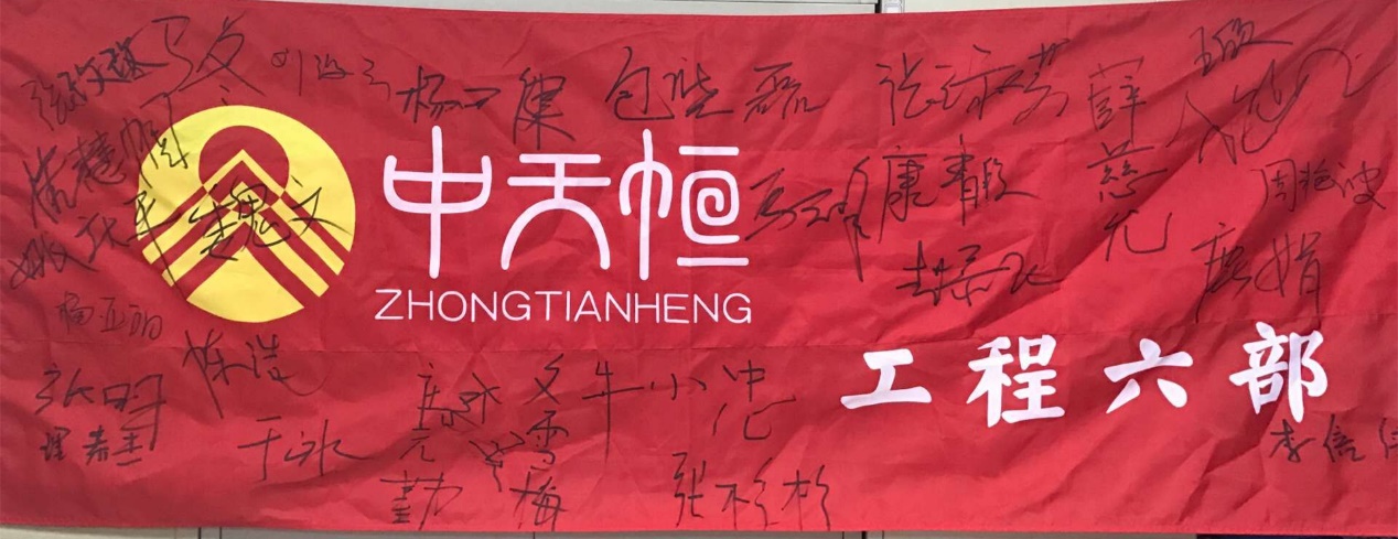 會(huì)議開(kāi)始前,參會(huì)人員與公司領(lǐng)導(dǎo)合影留念,并在工程六部旗幟上簽字留影。