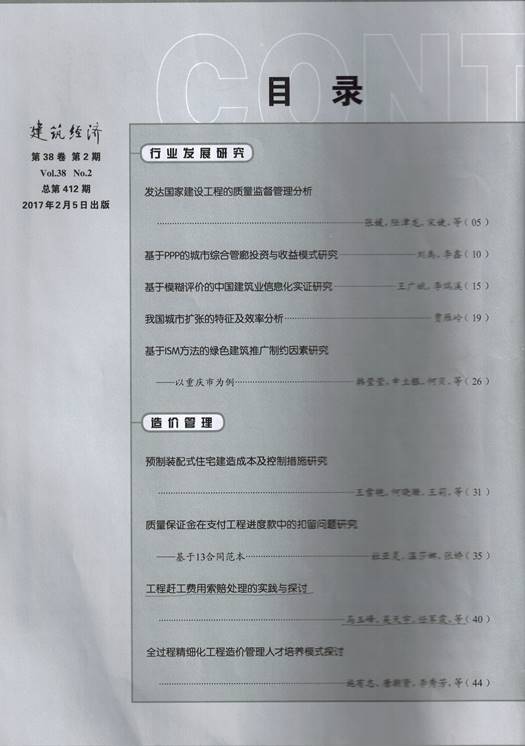 熱烈祝賀我公司論文入選國家核心期刊《建筑經(jīng)濟》