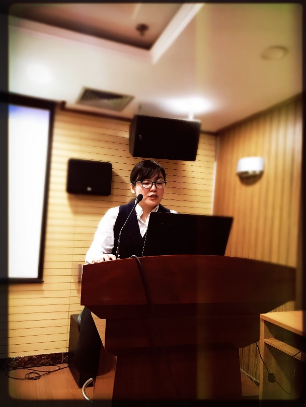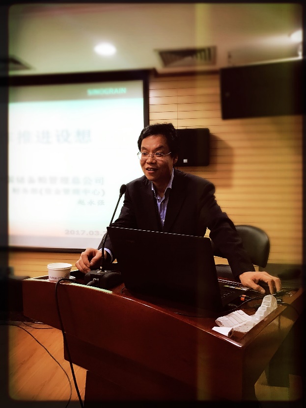圖為:財審六部部長施瑩華講解中儲糧崗位內(nèi)控推廣實施路徑及方法
