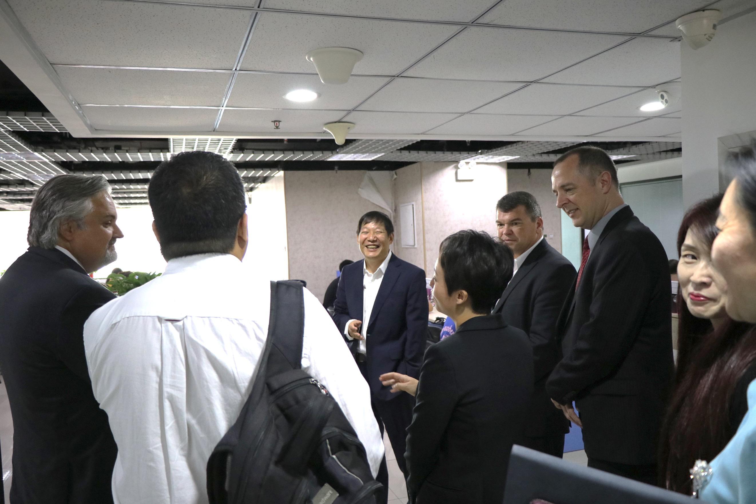 早10點,在我所徐榮才副總經(jīng)理、薛慈允副總經(jīng)理、李玲副總經(jīng)理精心組織的歡迎儀式中,在于維嚴(yán)老師、趙欣老師、蔣勝老師以及翻譯江舒老師的陪同下,雙方親切會面,一同參觀了我所辦公區(qū)域并進(jìn)行了卓有成效的會談。