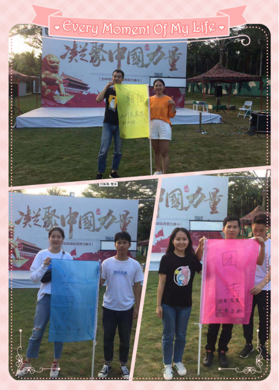 3分鐘成立3個(gè)組,要的就是這種效率!一番頭腦風(fēng)暴,一個(gè)個(gè)響亮的團(tuán)隊(duì)口號(hào)、一首首嘹亮的隊(duì)歌、一組組富有特點(diǎn)的團(tuán)隊(duì),逐一精彩亮相?!俺?yáng)隊(duì)”“團(tuán)結(jié)隊(duì)”“笨鳥隊(duì)”,三組個(gè)性鮮明、充滿力量的團(tuán)隊(duì),以其各自特有的形象,爭(zhēng)相拉開了拓展的序幕。