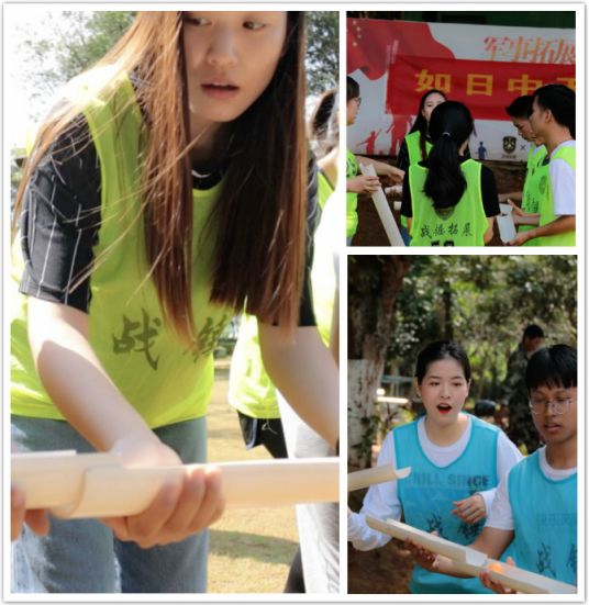 “凝聚中國(guó)力量”,背景牌上的一行大字,給各路拓展隊(duì)員,增添了無(wú)窮的力量。