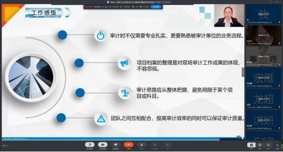 最后,趙志新副總進行了點評。同時,提出了項目經(jīng)理的基本素質(zhì),首先要做到把控項目,明確目標;其次是專業(yè)能力,考取證書是一方面,更重要的是綜合能力的提升;最后說明了項目經(jīng)理要做好兩個延伸,往前要關注招投標事宜,更好了解客戶的需求,向后要與客戶維護良好的關系,形成自己的市場范圍甚至是市場領域。另外,趙總也對持續(xù)學習提出了新的方向,考取注會證書是一個方面,考取職稱證書也很重要。