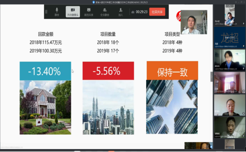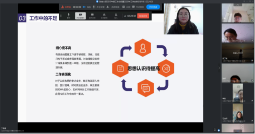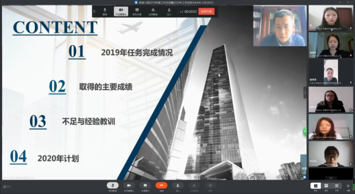 會議持續(xù)到中午12:30,進行了午間簡短的休息。下午2:00整,大家再次上線,會議繼續(xù)進行,彭瑞華、蘇丁銳、馮永芳等3位新晉事業(yè)組長也對2019年個人工作情況進行了總結(jié),對工作中存在的問題與不足做了深刻的剖析,并提出了改進方法和思路,同時對2020年擔(dān)任事業(yè)組組長后對于考核任務(wù)實現(xiàn)、項目管理、質(zhì)量控制、團隊管理、投標(biāo)管理等方面提出了詳細的計劃和想法。