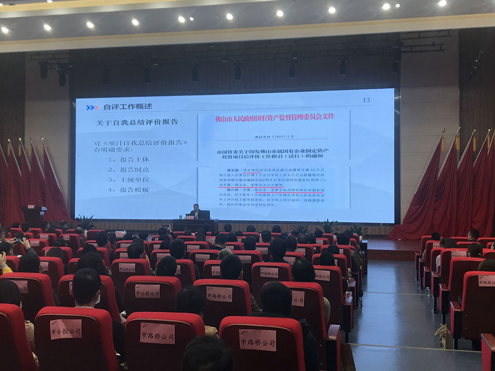 當(dāng)天上午,接受佛山市國資委的委托,中天恒管理咨詢鮑良做了投資項目后評價專題培訓(xùn)?;诙嗄炅己玫暮献麝P(guān)系,以及佛山市國資系統(tǒng)投資項目后評價業(yè)務(wù)開展的良好基礎(chǔ),數(shù)十家市屬國企投資工作主管領(lǐng)導(dǎo)和部門負(fù)責(zé)人事前主動踴躍報名,與會聽課人員達(dá)150余人,培訓(xùn)效果得到諸多國企的積極響應(yīng)和肯定。