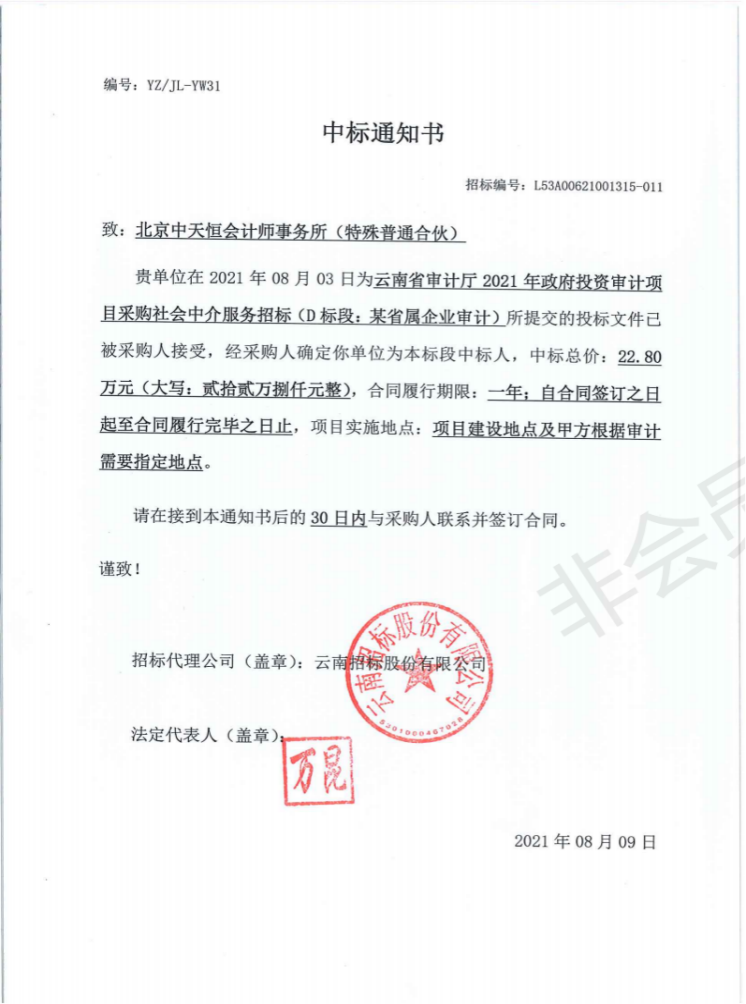 繼云南機(jī)場集團(tuán)昆明機(jī)場財(cái)務(wù)監(jiān)理、云投集團(tuán)吳哥機(jī)場財(cái)務(wù)監(jiān)理項(xiàng)目之后,近期我所中標(biāo)云南省審計(jì)廳審計(jì)服務(wù)項(xiàng)目和中標(biāo)云南省康旅控股集團(tuán)有限公司2021年度至2023年度審計(jì)服務(wù)入圍項(xiàng)目,兩個(gè)項(xiàng)目是我所除機(jī)場項(xiàng)目外首次進(jìn)入較大的云南地方項(xiàng)目,對拓展云南市場具有示范意義。