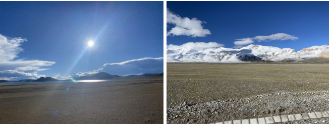 記得那是夜間,當(dāng)我們從安多檢查站出發(fā)之后上到了唐古拉山口,這段路并不好走,地面沉降低洼起伏,而拉著貨物的大車(chē)比比皆是,隨便一個(gè)大車(chē)的雙閃燈就能晃得我們睜不開(kāi)眼睛,而我也睡不好覺(jué)。半夢(mèng)半醒總是會(huì)被一陣陣急促的剎車(chē)或雙閃燈光讓我時(shí)不時(shí)分不清自己身處現(xiàn)實(shí)還是夢(mèng)境,在不知是第幾回被晃醒之后睜開(kāi)眼睛看到了窗外的大雪,那一刻我清楚地意識(shí)到,在9月份上旬的某一天,我在車(chē)?yán)锎┲难b,在大雪和寒風(fēng)中被凍得瑟瑟發(fā)抖。所幸那個(gè)時(shí)候沒(méi)有半點(diǎn)悲天憫人的感覺(jué),反而被豐富多彩的大千世界奇特景象所折服,如果不是著急趕路,真想下車(chē)好好欣賞一番雪景才是。春有百花秋有月,夏有涼風(fēng)冬有雪,世間萬(wàn)物真的各有各的好,既有相遇時(shí)的驚喜,卻又沒(méi)有停下車(chē)好好欣賞一番的時(shí)機(jī),只能在遺憾和慶幸中各自感慨,這就是生活!