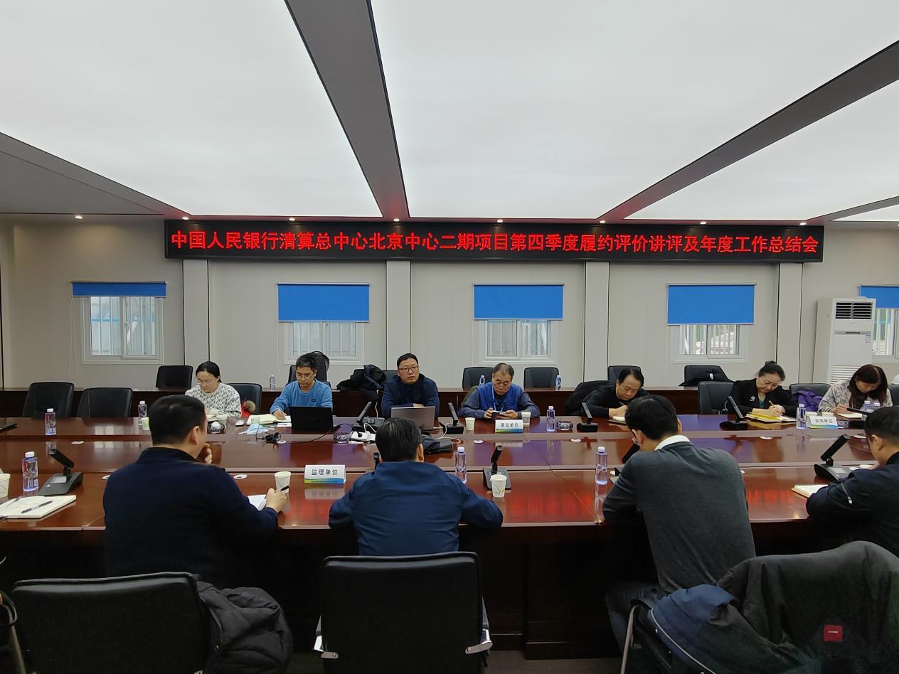 首先,中國人民銀行清算總中心北京項(xiàng)目部負(fù)責(zé)人劉春霖主持本次會(huì)議,項(xiàng)目管理、設(shè)計(jì)、造價(jià)咨詢、監(jiān)理、總承包單位項(xiàng)目負(fù)責(zé)人分別總結(jié)本年度的工作成果及不足之處,并梳理了下一年的工作計(jì)劃。