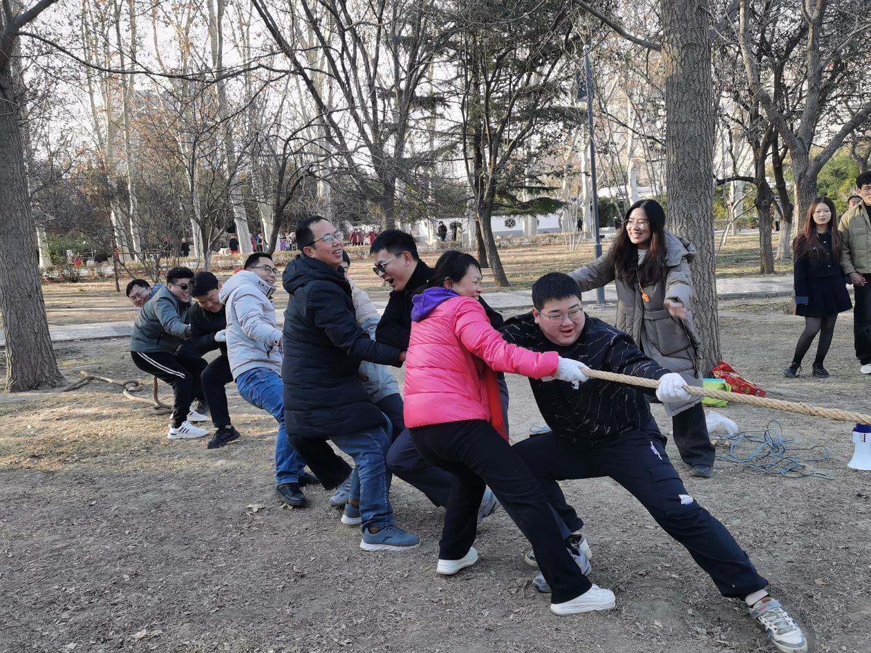 下午,全場(chǎng)成員參觀了叢臺(tái)七賢祠,并在叢臺(tái)公園進(jìn)行了團(tuán)建活動(dòng)?;顒?dòng)現(xiàn)場(chǎng)氣氛熱烈,大家被分成三個(gè)小組,開始了“拔河”“跳繩”等一系列互動(dòng)游戲。拔河比賽中,大家拼盡全力,臉上寫滿了專注與決心,雙腿用力地抵住地面,隊(duì)友們的加油聲響徹云霄,氣氛異常激烈,笑聲與吶喊聲在整個(gè)公園交織,向眾人展示著工程二部全體成員的干勁與決心。