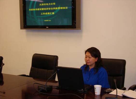 會(huì)議由天津市電力公司財(cái)務(wù)部主任林青先生主持,中天恒項(xiàng)目經(jīng)理該項(xiàng)目負(fù)責(zé)人施瑩華女士做了具體匯報(bào),匯報(bào)展示了該項(xiàng)目取得的主要成果,并從一個(gè)體系、兩個(gè)鏈接、三大特色等方面進(jìn)行了總結(jié),同時(shí)對(duì)天津市電力公司下一階段內(nèi)控工作提出了忠肯的建議。