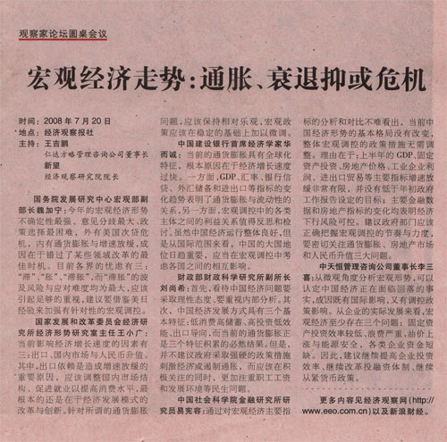 李三喜:預測中國經(jīng)濟走勢是件困難的事,是國際、國內(nèi),是經(jīng)濟、社會、政治、自然等多種因素綜合的結(jié)果??偟母杏X是確定性和不確定性并存,機會與風險并存。從實際出發(fā),當前的最重要的是我們?nèi)绾卧诂F(xiàn)有的宏觀經(jīng)濟形勢下,深層分析中國經(jīng)濟尤其是中國企業(yè)所面臨的困難和問題,并尋求應對之策。