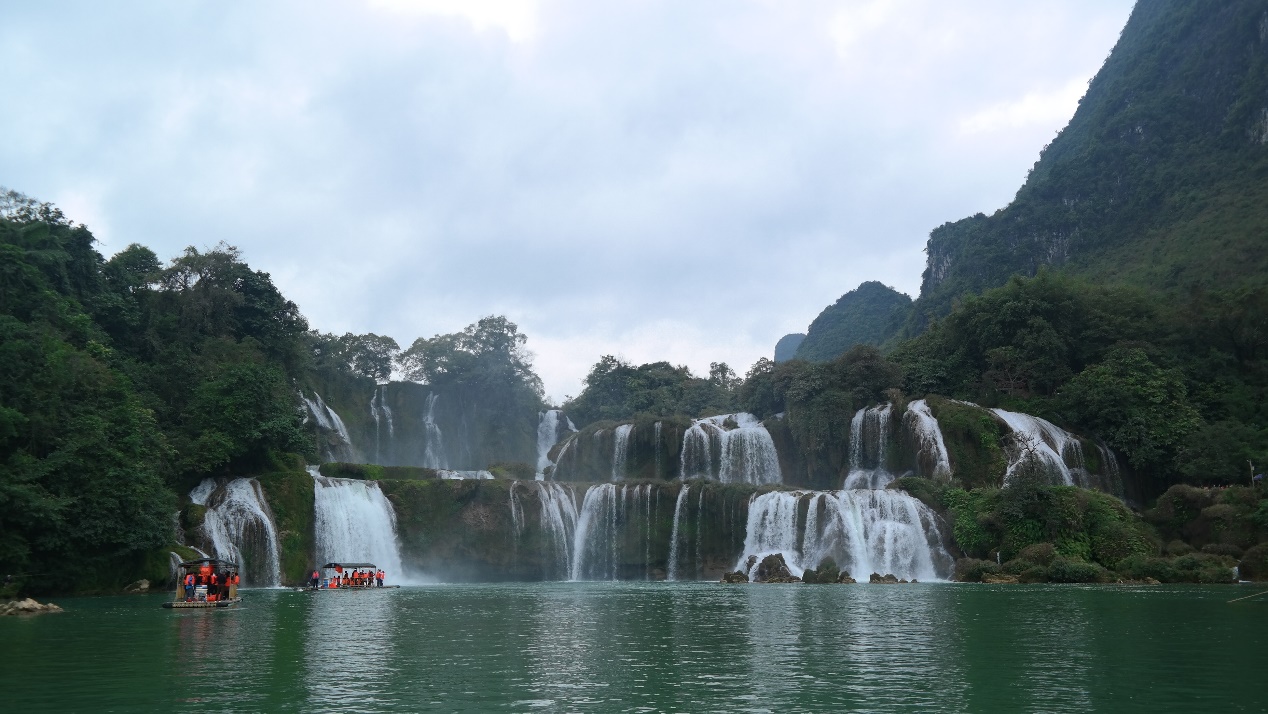 驅(qū)車將近四個(gè)多小時(shí),到達(dá)德天景區(qū),德天瀑布位于廣西南寧邊陲大新縣碩龍鄉(xiāng)德天村,在中越邊境處,歸春河上游,被稱為世界第二跨國(guó)大瀑布。