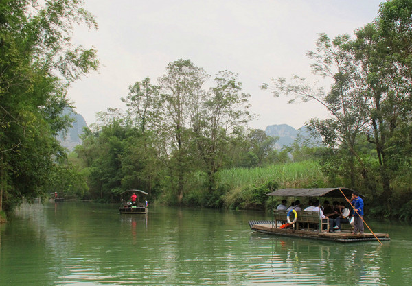 坐竹排游覽明仕河,品嘗當(dāng)?shù)氐目喽〔?,欣賞河兩邊的美。