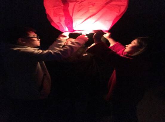 自此第一天的戶外活動(dòng)便告了一段落,隨后我們開始回到住的農(nóng)家院開始準(zhǔn)備晚餐。飯后我們點(diǎn)起了篝火,放飛了孔明燈。伴隨著歌聲與歡笑聲我們第一天的活動(dòng)結(jié)束了。