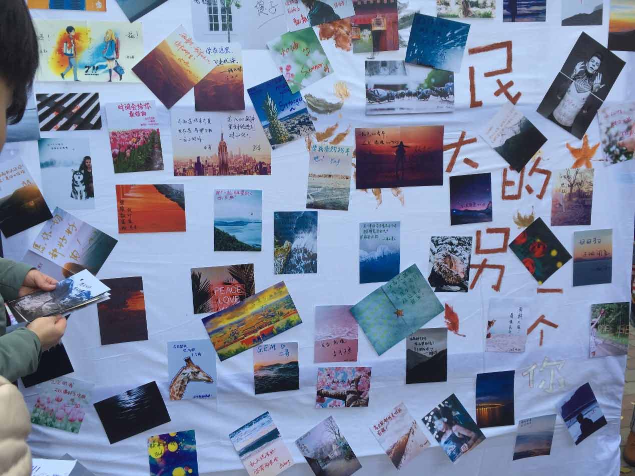 這張圖片是中午吃完飯后,我們到附近的中央民族大學(xué)散步的時候拍的,這是他們正舉辦的一個活動,滿墻得的青春洋溢啊,我當(dāng)時覺得有趣就也寫了一張呢,還送了我小禮物,只是想說生活中處處是風(fēng)景,我們的未來充滿著驚喜……