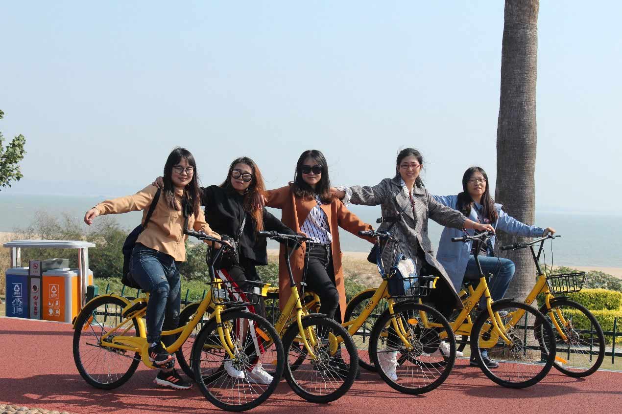 在環(huán)島路上大家興致勃勃的騎上小黃車,欣賞海邊風(fēng)景的同時,也增加了彼此的了解,信任。