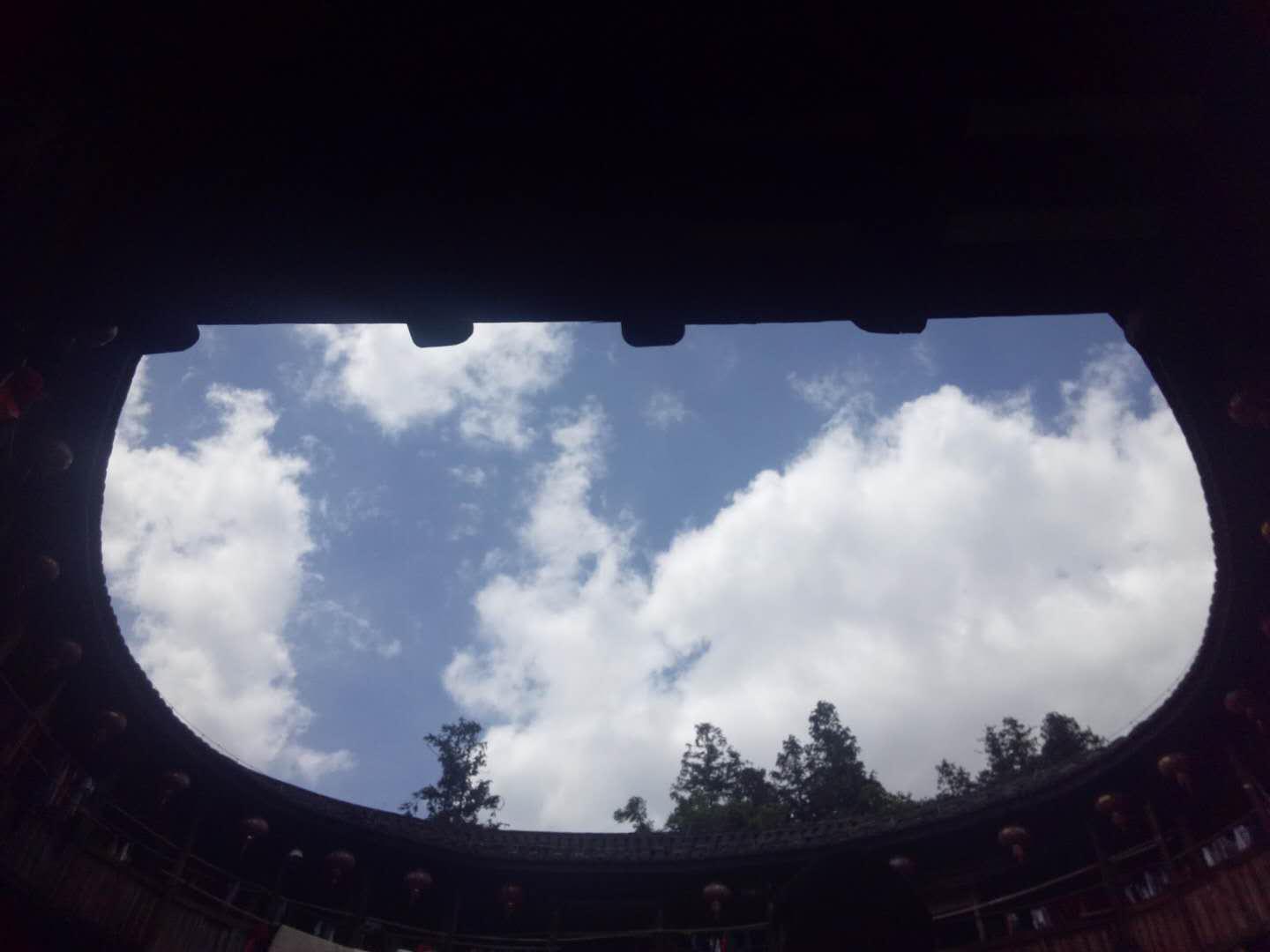 走進(jìn)土樓,像是走進(jìn)了一個(gè)巨大的家族之城,然后才看到一個(gè)個(gè)單獨(dú)的家。有人說(shuō),土樓是一個(gè)擴(kuò)大的家,又是一座縮小的城。在土樓的中間,是寬闊的院壩。仰望,比院壩更寬闊是圓穹的屋頂,比屋頂更寬闊是的蔚藍(lán)的天空,比天空更寬闊的呢?那該是聰明的客家人對(duì)建筑的創(chuàng)意的思維!