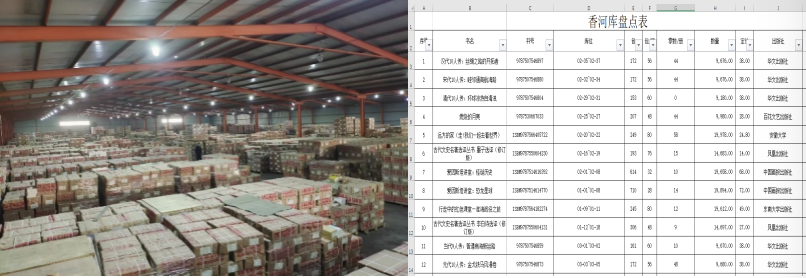 圖書與其他物資不同,盤點需要一定的技巧和特殊的流程。比如多機聯網移動盤點法、實地盤存法等。本次在盤點過程中,圖書堆放較高,堆垛較大,我們總結了一些簡便計數方法,如“223”就是7包、“233”就是8包;盤點時兩人一組,一人負責盤點,一人負責書籍信息登記、拍照留存,避免出現錯誤;盤點數據的整理統(tǒng)計同樣重要,盤點后我們再次進行核對,包括書名、書號、碼洋、版次等詳細信息。在大家的共同努力下,克服了艱苦的工作環(huán)境,同時保證了數量的精準、完整,圓滿完成本次盤點清查工作,得到了客戶的認可。
