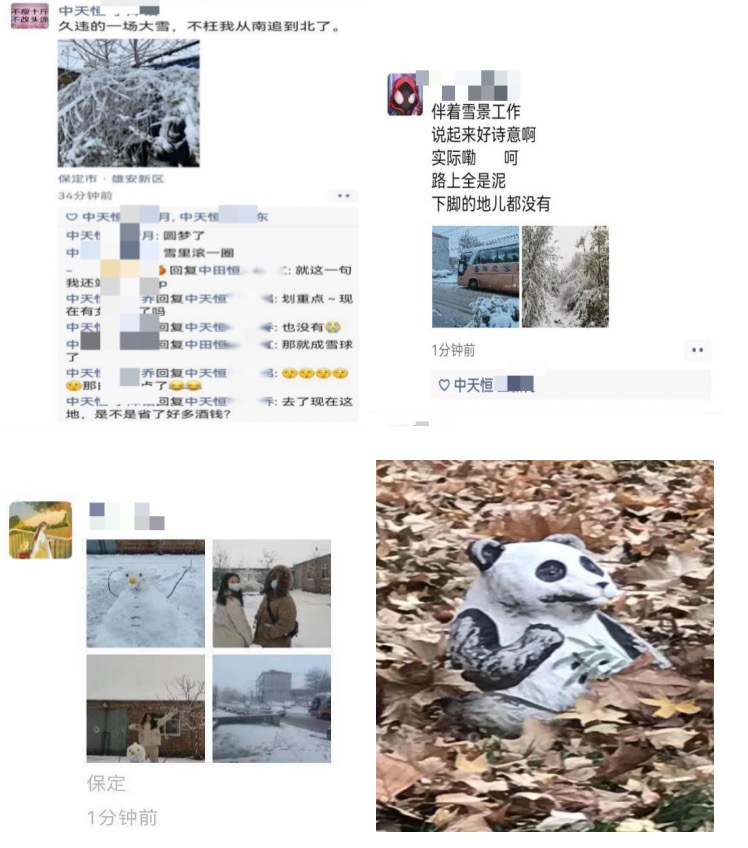 環(huán)境雖然更加惡劣,卻給我們帶來了很多樂趣,同事們苦中作樂紛紛踴躍的發(fā)表了對(duì)這場(chǎng)雪的“看法”。生活哪有上班苦?不過我們會(huì)尋找工作中的平衡與樂趣。
